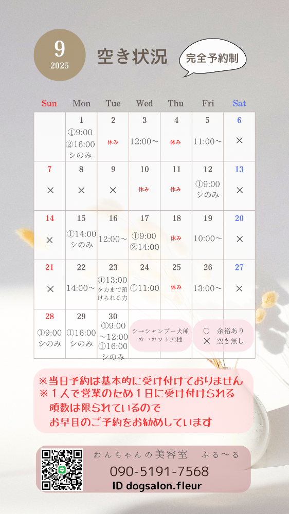 1人での経営なのでトリミング中などお電話での対応が難しい場合がございます🙇♀️